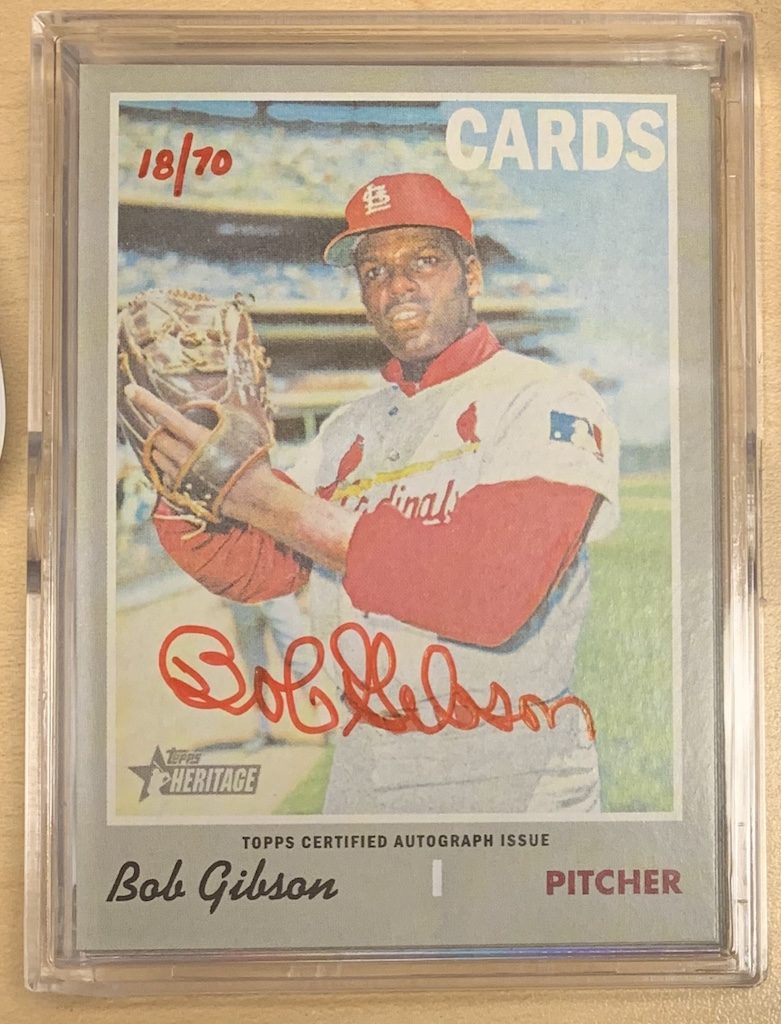 You Are Here: Home » Customer Pulls » Way to go Jeff! 2019 Topps Heritage Bob Gibson Red Auto 18/70.