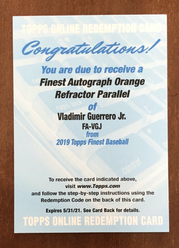 You Are Here: Home » Customer Pulls » 2019 Finest Vladimir Guerrero Jr Auto Orange Refractor Redemption pulled by our lucky man Bill.