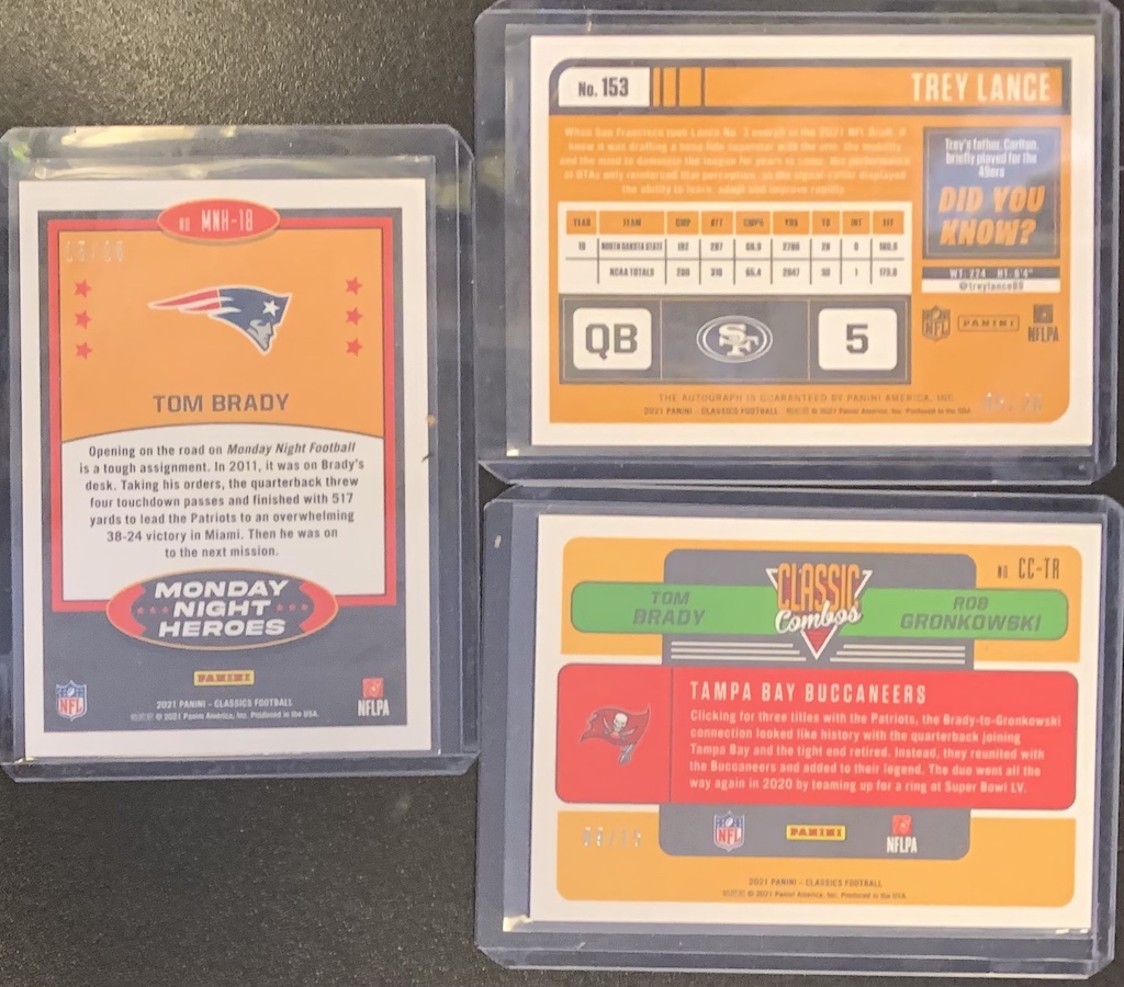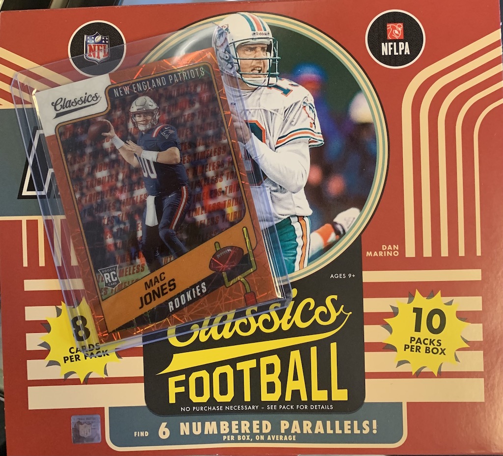 – Back for 2021, Spectra Football includes 1 Rookie Patch Autograph, 3 Additional Autographs, 4 Memorabilia Cards and 7 base/parallels/variations and 1 insert per box on average.